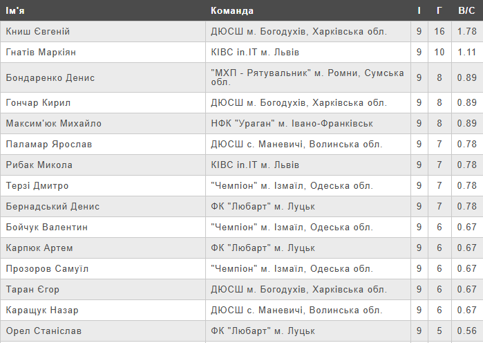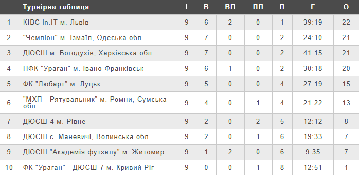 Турнірна таблиця чемпіонату України (U-15) після другого з’їзного туру.