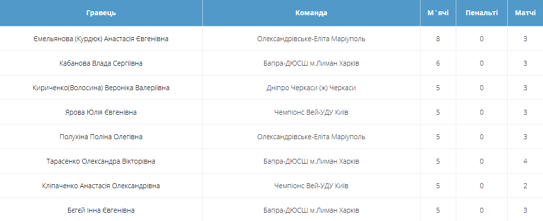 Голи: Семенюк (16) – Саноцька (2 – автогол), Кліпаченко (19, 24, 39)