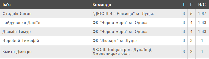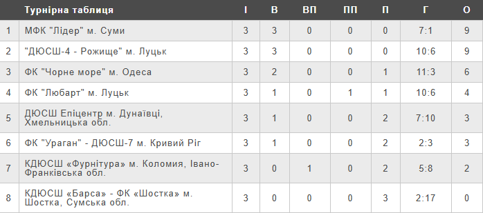 Турнірна таблиця чемпіонату України (U-13) серед команд Першої ліги після третього туру.