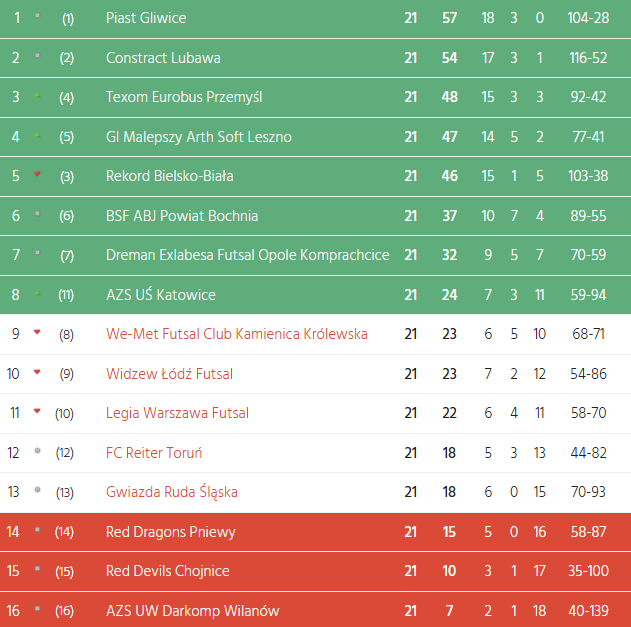 Турнірна таблиця чемпіонату Польщі після двадцять першого туру.