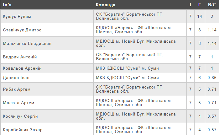 Рейтинг бомбардирів.