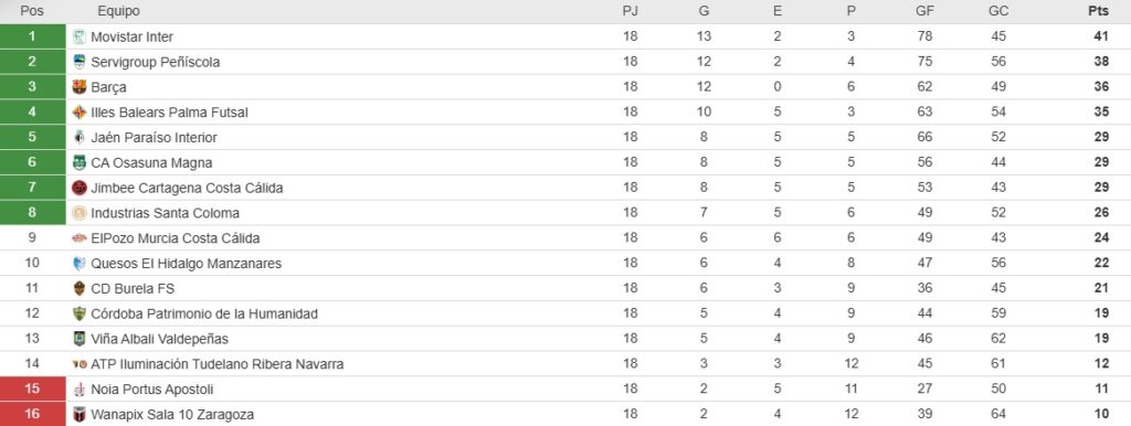 Турнірна таблиця чемпіонату Іспанії після вісімнадцятого туру.