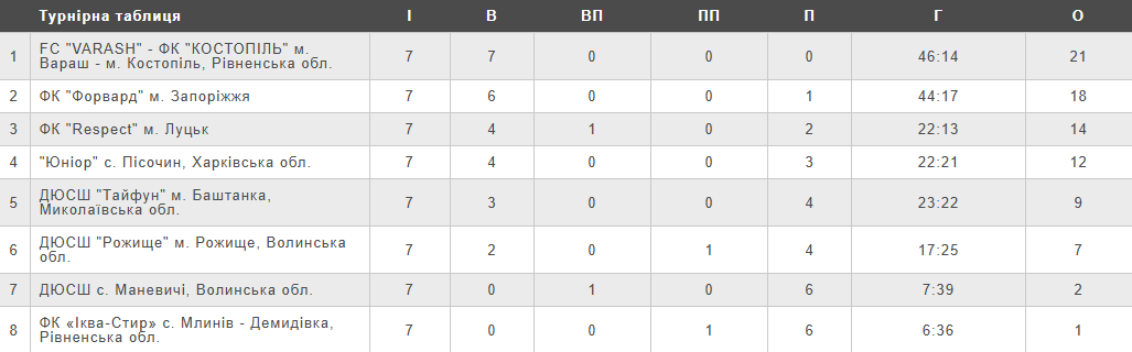 Підсумкова турнірна таблиця чемпіонату України (U-8).