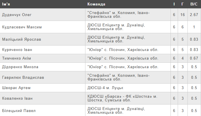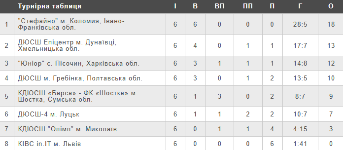 Турнірна таблиця чемпіонату України (U-10) серед команд Першої ліги після шостого туру.