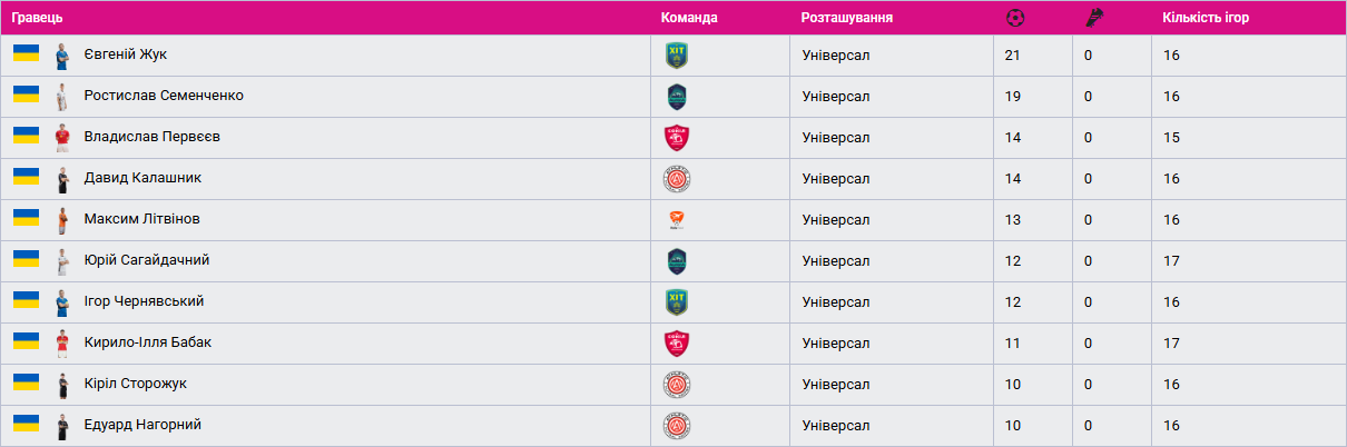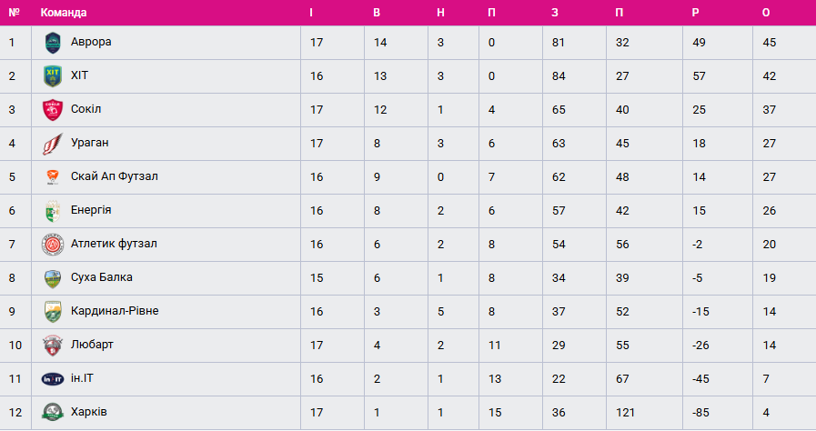 Поточна турнірна таблиця FAVBET Екстра-ліги після сімнадцятого туру.