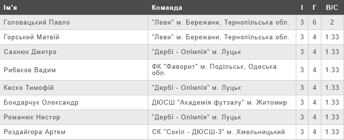 Голи: Ільтьо (19) – Легета (3), Дерев’яник (4 – автогол), Головацький (9, 9, 16)