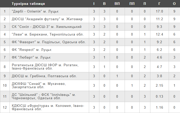 Турнірна таблиця чемпіонату України (U-12) після трьох турів.