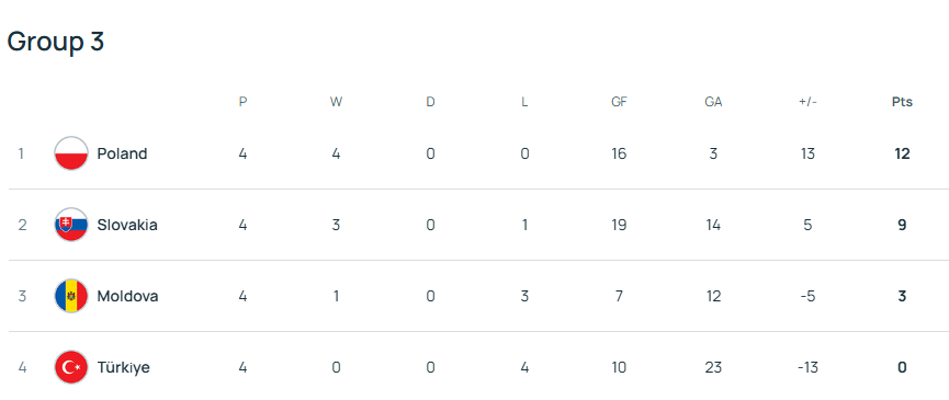 Поточна турнірна таблиця групи 3