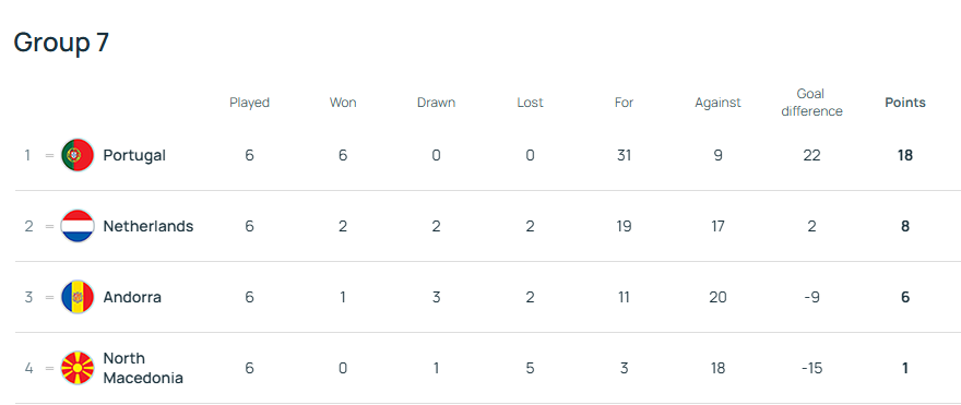 А група 7 вже офіційно завершила свою турнірну дистанцію. Збірна Португалії завершила Основний раунд з максимумом набраних очок. А ось шанси збірної Нідерландів на плей-оф виглядають примарними – «помаранчеві» набрали лише вісім очок, чого може не вистачити для потрапляння до числа восьми кращих других команд, які зіграють у плей-оф.