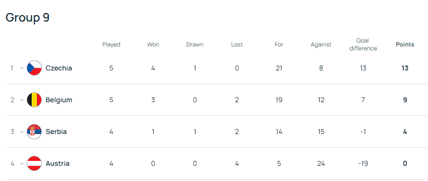 Ще одним учасником Євро-2026 стала збірна Чехії, яка обіграла прямого конкурента – збірну Бельгії – на її майданчику. І хоча в обох команд ще залишається по одному матчу, та розклад сил у групі 9 вже зрозумілий.
