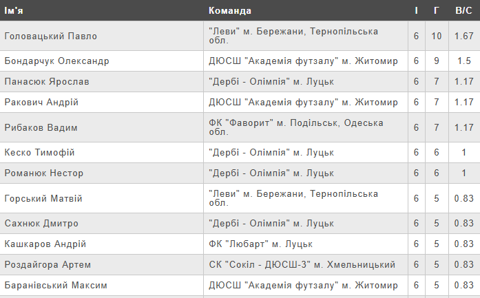У Коломиї матчами календарного шостого туру завершився перший з’їзний тур чемпіонату України (U-12). У якості лідерів наразі після шести турів перебувають дві команди – луцька «Дербі-Олімпія» та житомирська «Академія футзалу», яка в очному поєдинку переграла прямого конкурента – хмельницький «Сокіл-ДЮСШ-3», для якого це була перша поразка у чемпіонаті.