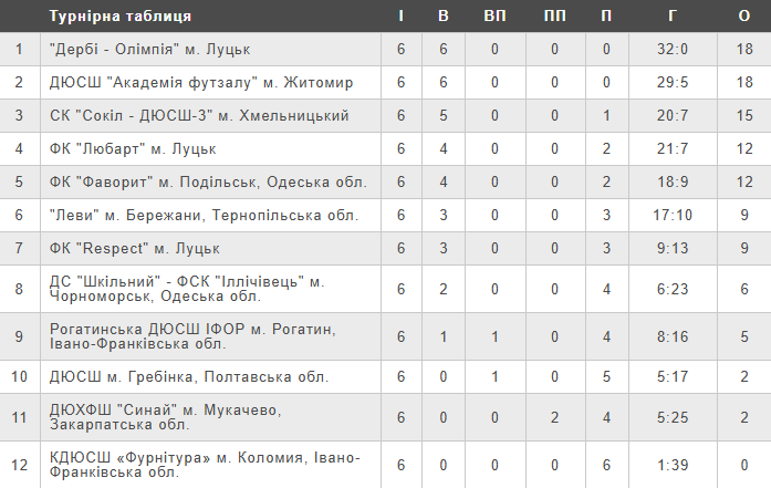 Турнірна таблиця чемпіонату України (U-12) після першого з’їзного туру.