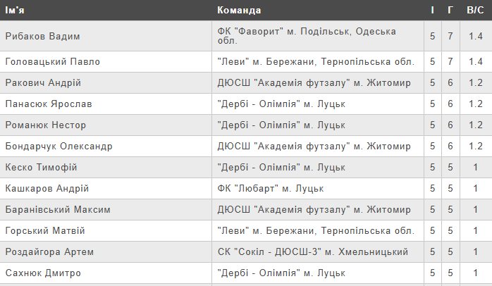 Рейтинг бомбардирів.