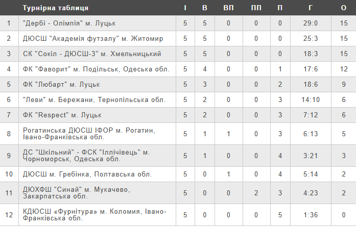 Турнірна таблиця чемпіонату України (U-12) після п’ятого туру.