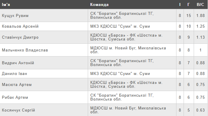 Турнірна таблиця чемпіонату України (U-17) серед команд Першої ліги після восьмого туру.