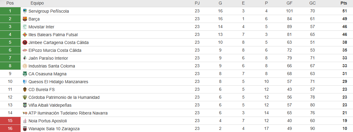 Турнірна таблиця чемпіонату Іспанії після двадцять третього туру.