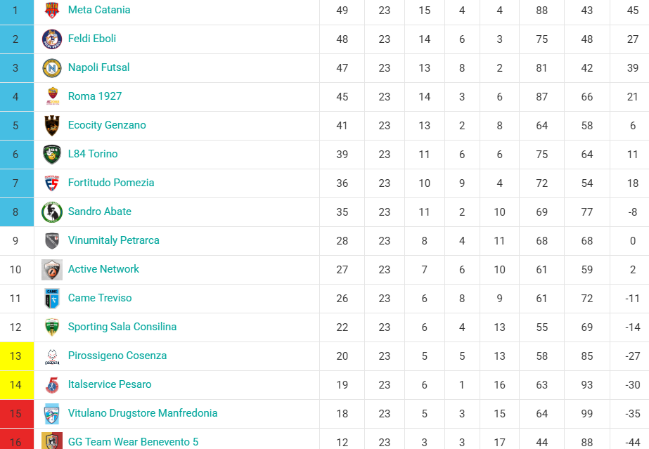 У чемпіонаті Італії серед команд Серії «А» відбулись матчі двадцять третього туру. За його підсумками у турнірній таблиці знову відбулася зміна лідера. «Наполі Футзал» поступився вдома «Петрарці», чим скористалась «Мета Катанія», котра на власному паркеті обіграла «Фортітудо». Цікаво те, що у цьому турі найпопулярнішим був рахунок 4:3.