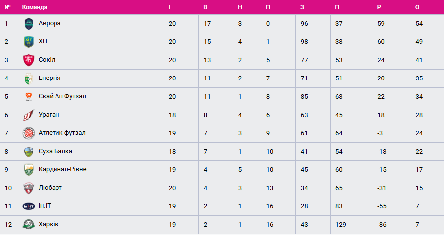Поточна турнірна таблиця FAVBET Екстра-ліги після двадцятого туру.