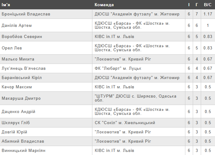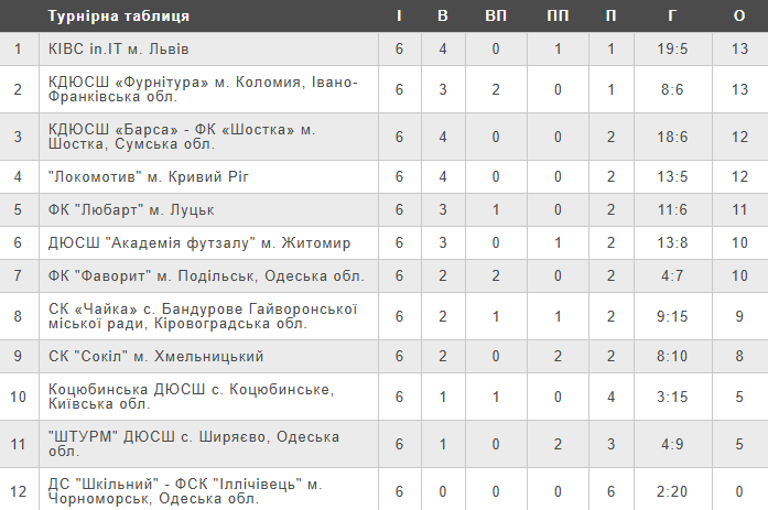 Турнірна таблиця чемпіонату України (U-14) після першого з’їзного туру.