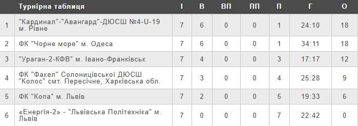 11.30. «КоПа» (Львів) – «Кардинал-Авангард-ДЮСШ № 4-U-19» (Рівне)