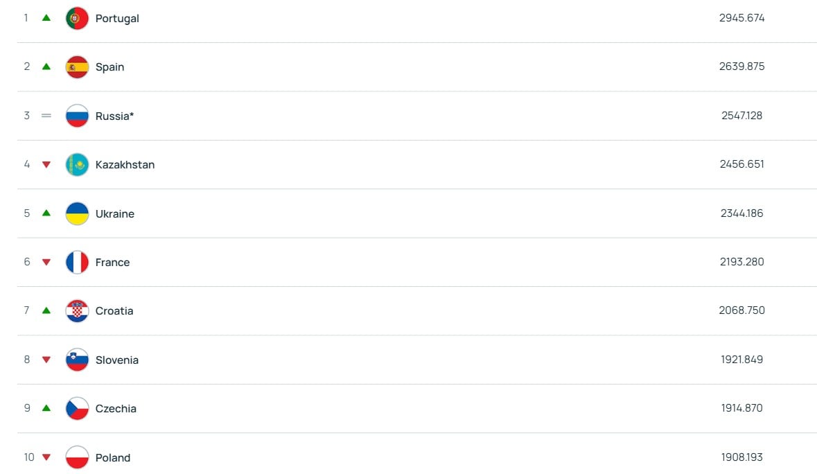 Збірна України продовжує перебувати на п’ятій сходинці рейтингу (а без урахування росіян – на четвертій. – А. Т.). У порівнянні з лютневим рейтингом УЄФА, українській команді не тільки вдалося зміцнити свої позиції, а і відірватись від найближчого переслідувача – збірної Франції, яка теж потрапила на Євро-2026.