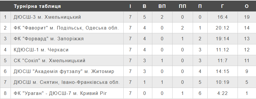 ДЮСШ № 3 (Хмельницький) – «Ураган – ДЮСШ № 7» (Кривий Ріг) – 2:0
