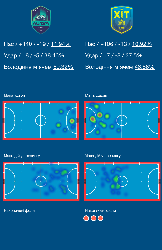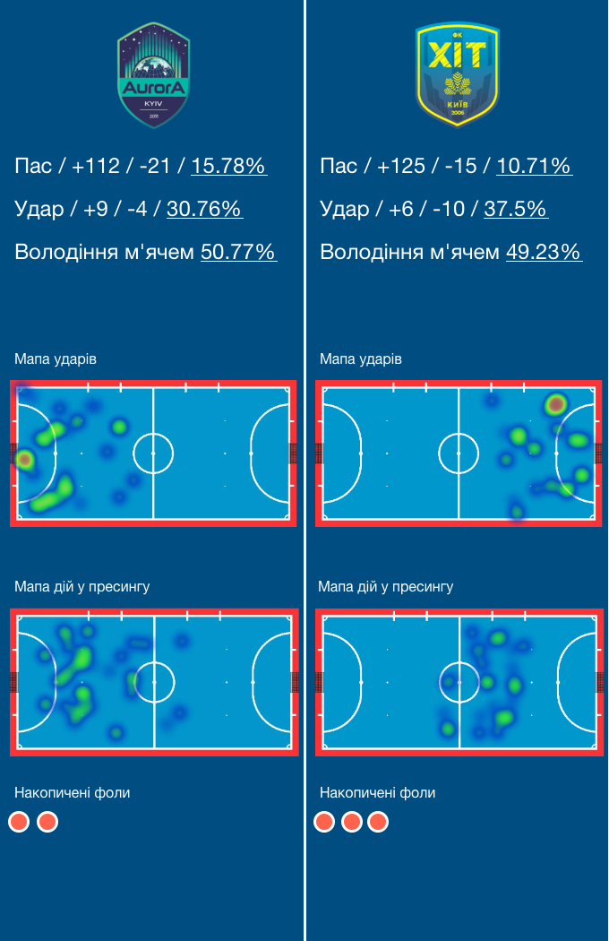 Пропонуємо Вашій увазі графічні статистичні дані другого фінального матчу чемпіонату України серед команд FAVBET Екстра-ліги між київськими «Авророю» та «ХІТом». Статистику у форматі графіки ексклюзивно для футзального порталу «5х5» надав аналітик Дмитро Калінін.