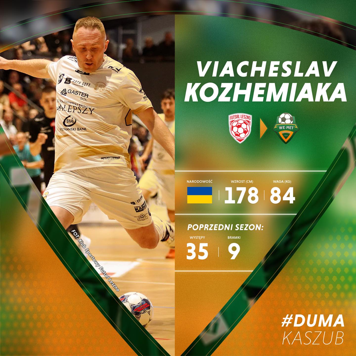 Пресслужба польського «Ве-Мету» повідомила про те, що у новому сезоні кольори цієї команди захищатиме український «стовп» В’ячеслав Кожемяка. До цього він протягом двох сезонів захищав кольори «Футзал Лешно». За два сезони у складі команди з Лешна він зіграв 70 матчів та забив 31 гол та отримав 12 жовтих карток. Зокрема, у сезоні 2024/2025 р. р. Кожемяка зіграв за «Футзал Лешно» 35 поєдинків, у яких відзначився дев’ятьма голами, а також «привіз» до свого пасиву чотири жовті картки. У складі лешнян став бронзовим призером чемпіонату Польщі разом з Сергієм Малишком, Артемом Росем та Євгенієм Козловим. Також у минулому сезоні «Український танк» зіграв два матчі за фарм-клуб «Футзал Лешно» – «Пяст» з Понєца, який грає у Другій лізі чемпіонату Польщі. У цих двох поєдинках він відзначився двома голами.