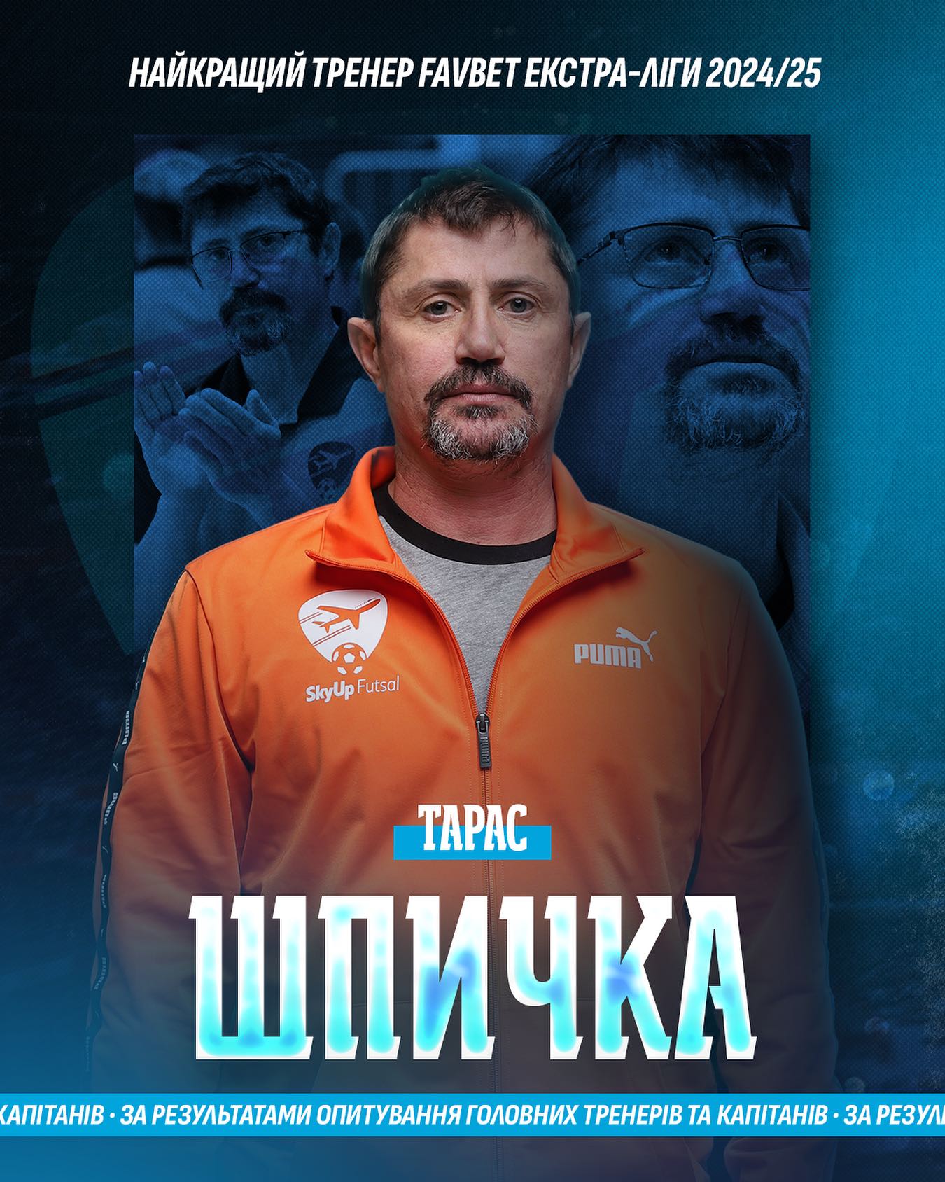 Пресслужба Асоціації футзалу України оприлюднила ім’я ще одного лауреата минулого сезону. Цього разу став відомий переможець у номінації «Найкращий тренер FAVBET Екстра-ліги у сезоні 2024/2025 р. р.». Ним став Тарас Шпичка, який у минулому сезоні тренував столичний «SkyUp Futsal» та привів «авіаторів» до бронзових медалей чемпіонату України.