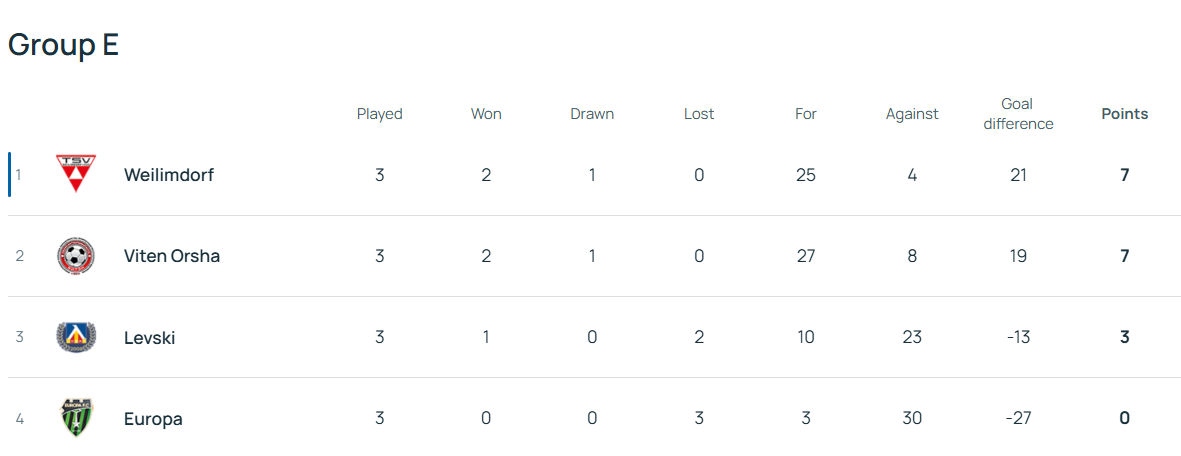 «Європа» (Гібралтар) – «Вайлімдорф» (Німеччина) – 0:15