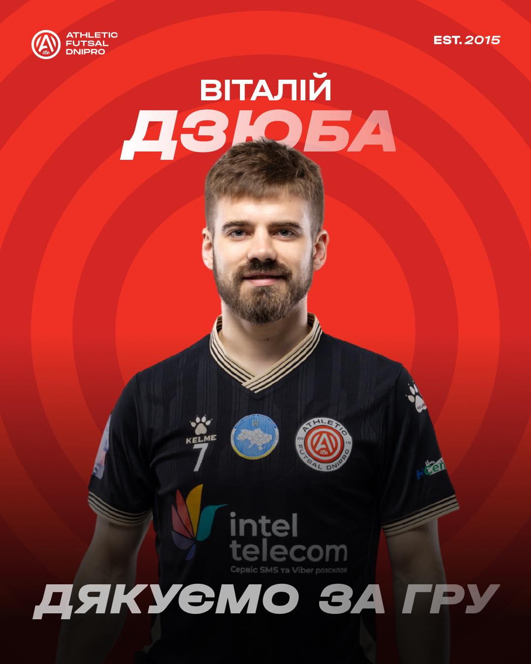 Пресслужба дніпровського «Athletic Futsal» повідомляє про припинення співпраці з капітаном команди з Дніпра Віталієм Дзюбою. Зокрема, повідомляється, що новим клубом вже колишнього капітана дніпрян стане «Будівельник», який грає у чемпіонаті Дніпра.