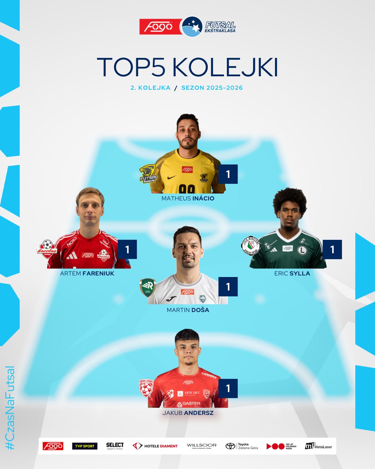 Польська ФОГО Екстракласа визначила п’ятірку найкращих гравців другого туру чемпіонату Польщі. До неї потрапив гравець збірної України Артем Фаренюк, який наразі виступає за «Євробус». Нагадаємо, що у другому турі команда з Перемишля на власному паркеті переграла «Ве-Мет» з рахунком 6:1, а Фаренюк став автором одного з голів «Євробусу».
