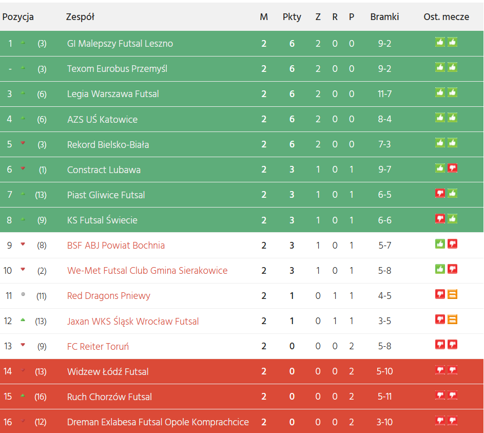Турнірна таблиця чемпіонату Польщі після другого туру.