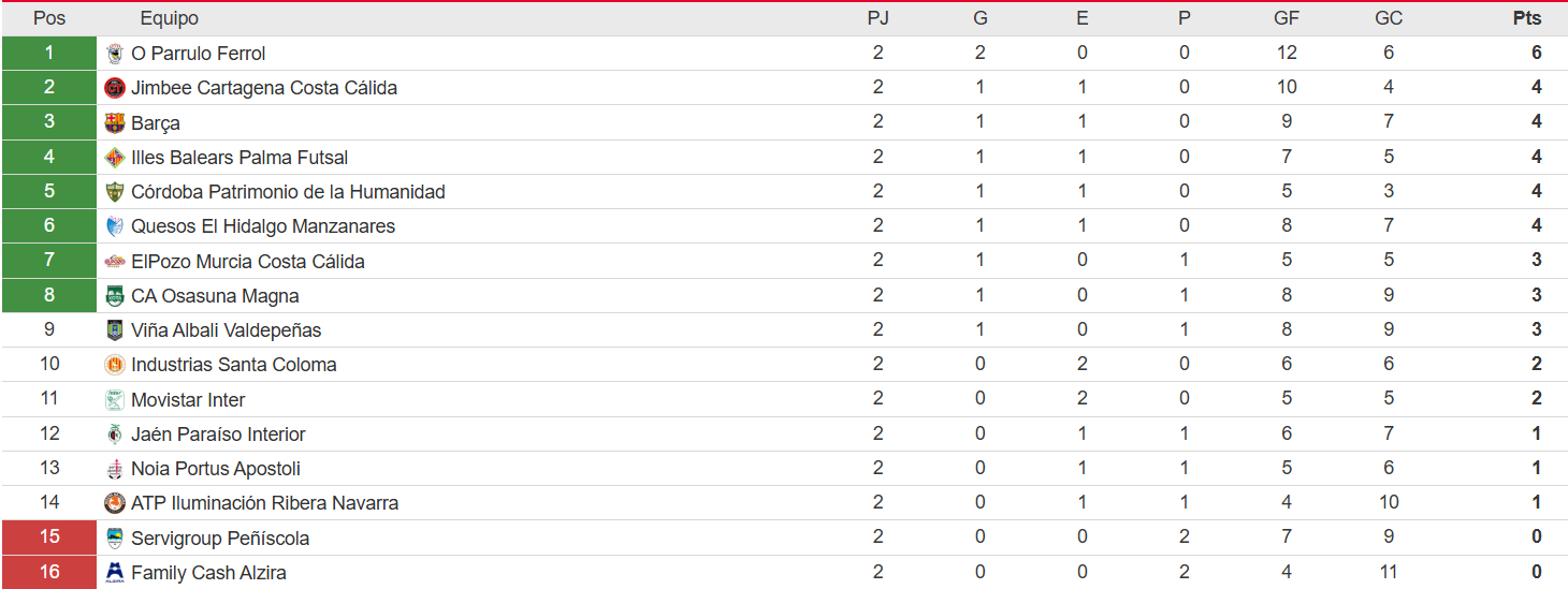Турнірна таблиця чемпіонату Іспанії після другого туру.