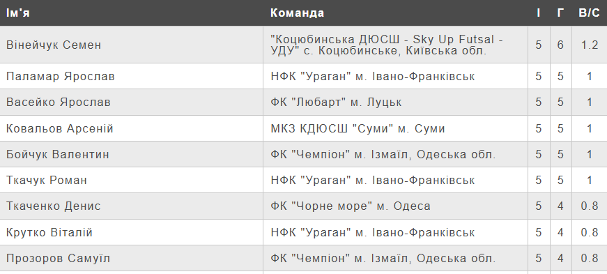 «Коцюбинська ДЮСШ-SkyUp Futsal-УДУ» (Коцюбинське) – КДЮСШ «Суми» (Суми) – 6:0