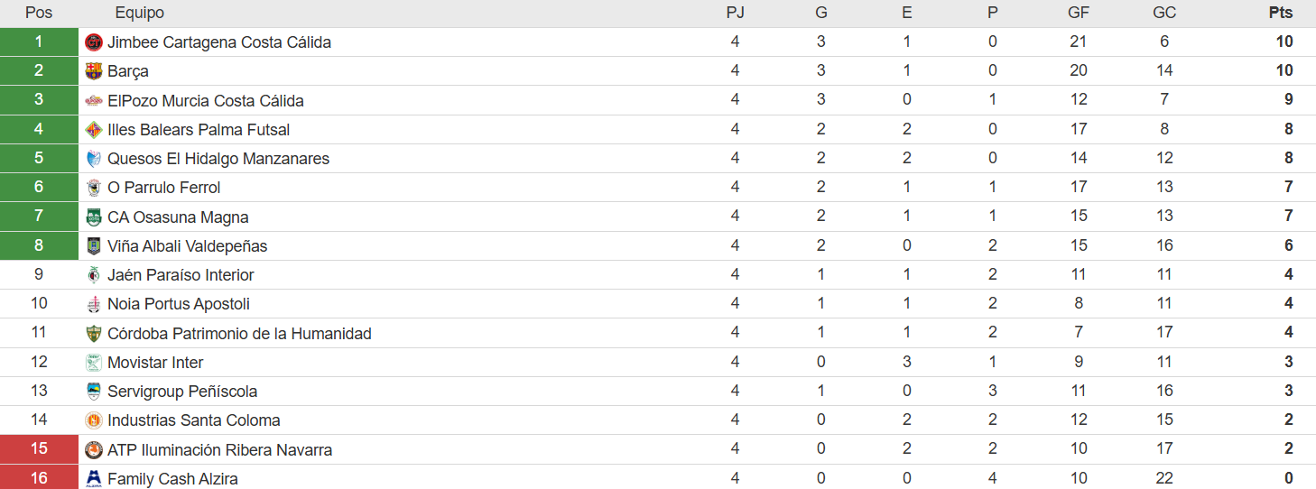 В останній вікенд вересня у чемпіонаті Іспанії серед команд Прімери відбулись матчі четвертого туру. Головною несподіванкою цього туру стала нічия «Пальми Футзал» у виїзному матчі з «Мансанаресом». Також варто відзначити чергову втрату очок від «Мовістар Інтера», який у цьому турі зіграв унічию з «Ріберрою Наваррою», кольори якої захищає українець Микола Микитюк. У цьому контексті також скажемо, що команда Ігоря Корсуна, «Осасуна Магна», так само зіграла внічию на виїзді з «О Парруло Ферроль» «завдяки» автоголу Дані Сальдісе.