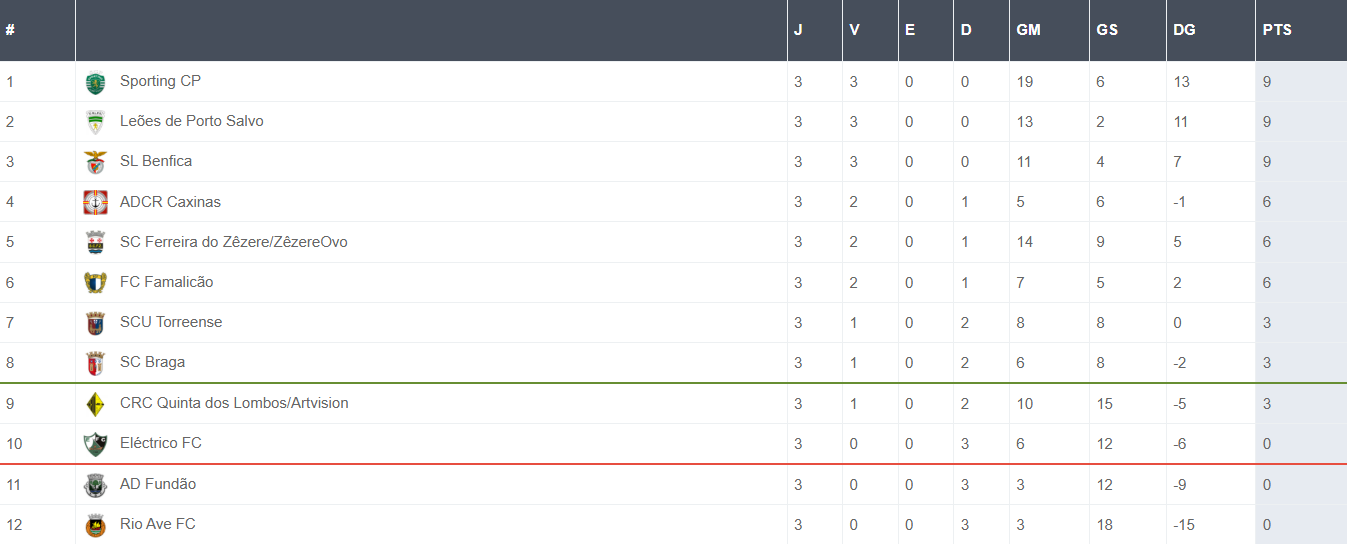 Турнірна таблиця чемпіонату Португалії після третього туру.
