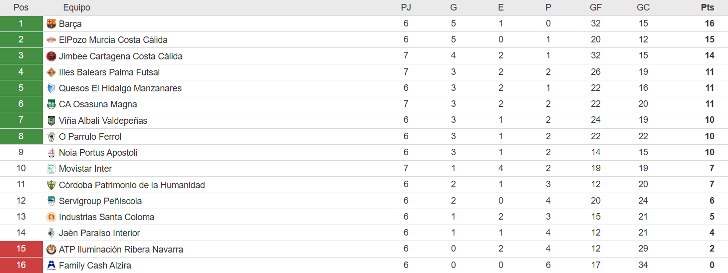 У чемпіонаті Іспанії серед команд Прімери з 10 по 12 жовтня відбулись матчі шостого туру. Центральний матч цього туру теоретично мав би бути на «Палау Блауграна», проте «Барселона» розгромила «Хаен Параісо Інтеріор» – 4:0 на користь підопічних Хаві Родрігеса. Натомість, цей тур запам’ятався виїзними поразками «Пальми Футзал» та «Джимбі Картахени», а також першою перемогою «Мовістар Інтера» у новому сезоні.