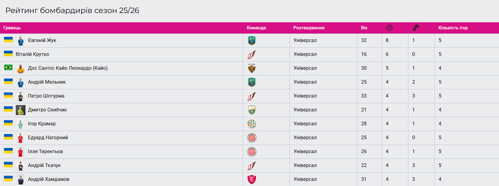 Рейтинг бомбардирів.