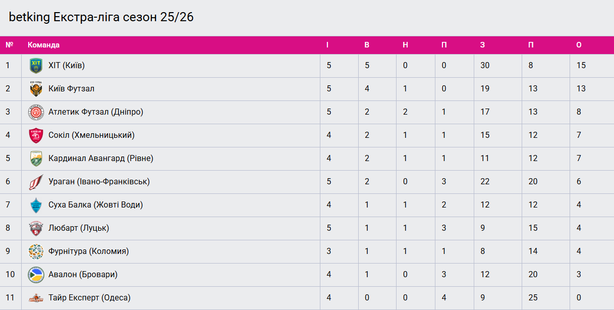Турнірна таблиця betking Екстра-ліги після п’ятого туру.