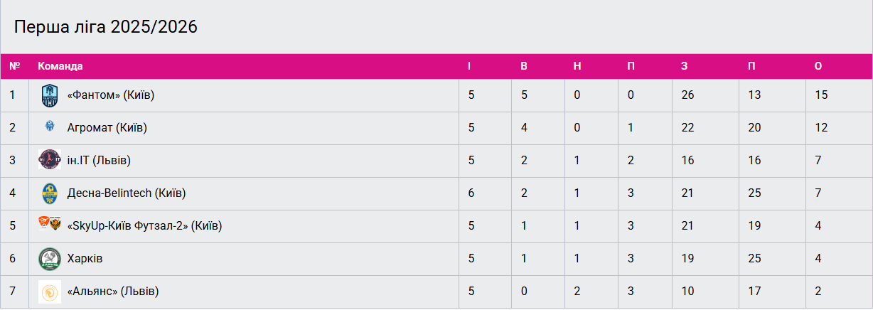 Поточна турнірна таблиця чемпіонату України серед команд Першої ліги після шостого туру.
