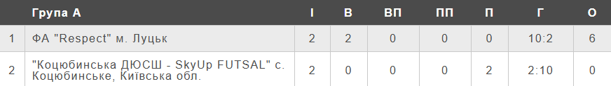 «Respect» (Луцьк) – «Коцюбинська ДЮСШ-SkyUp Futsal» (Коцюбинське) – 5:2
