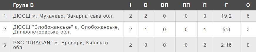 ДЮСШ (Мукачево) – «Ураган» (Бровари) – 12:1