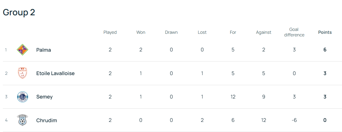 Турнірна таблиця групи 2 після другого туру.