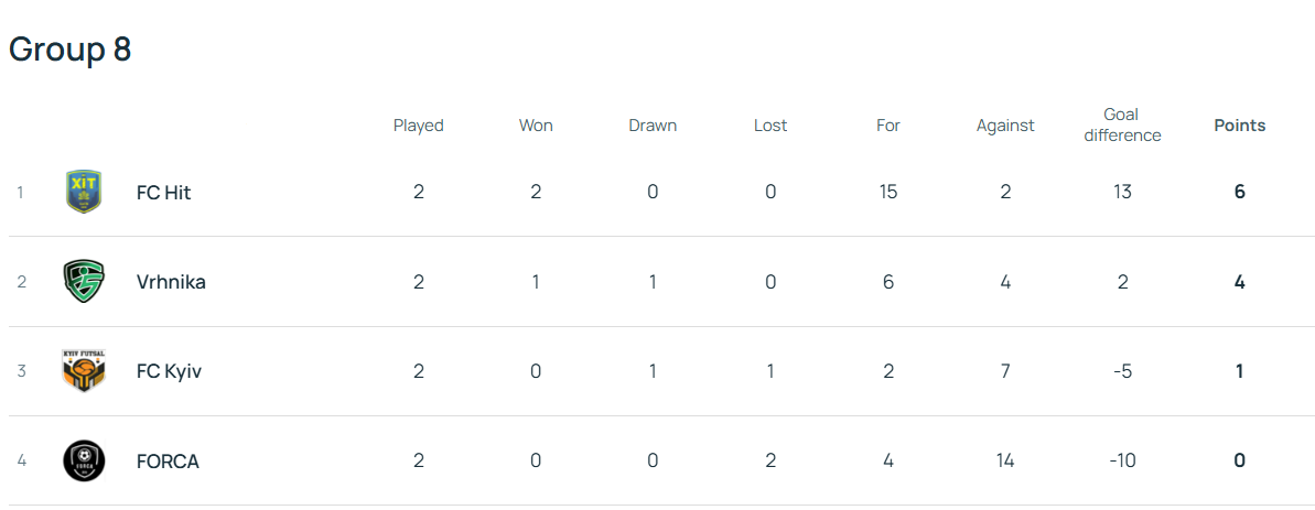17.00. «KYIV FUTSAL» (УКРАЇНА) – «ФОРЦА» (Північна Македонія)