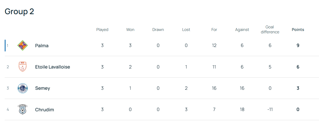 Підсумкова турнірна таблиця групи 2.
