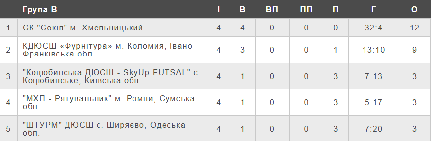 Підсумкова турнірна таблиця групи «Б»
