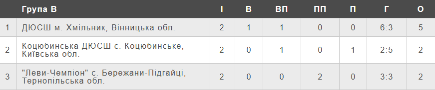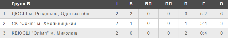 Підсумкова турнірна таблиця групи 2