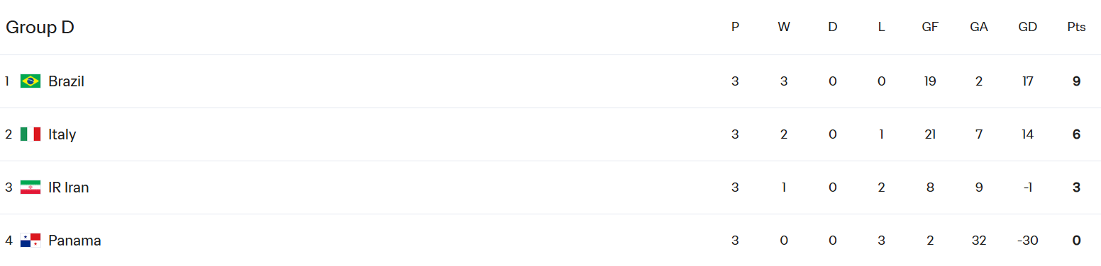 Підсумкова турнірна таблиця групи «D»
