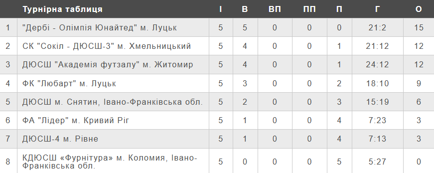 «Дербі-Олімпія Юнайтед» (Луцьк) – «Сокіл-ДЮСШ-3» (Хмельницький) – 6:1